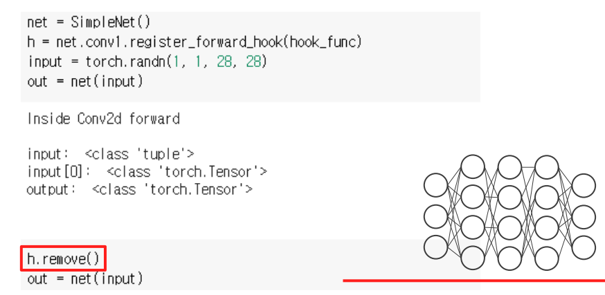 hooking을 할때 어떤걸 수행해야 하는지 Signature of hook fuction - forward 를 정의 해야 한다.